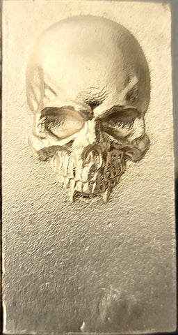 Cast in .999 fine silver, the 2025 Kannibal Skull bar is not just bullion, it’s a relic. A vertical ingot crowned by a protruding skull, it feels less like a “piece of silver” and more like something exhumed from a crypt and pressed into your hand with a warning not to let it go.